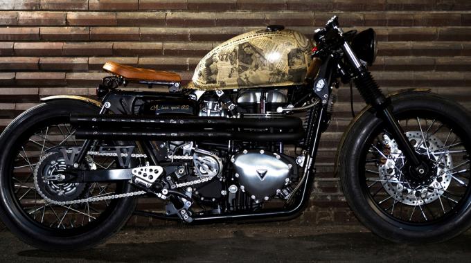 Partendo da base Thruxton,Triumph, ha dato vita ad una moto elegante ed originale che verrà presentata alla prossima edizione del Tridays di Neukirchen, in Austria. In oltre 220 ore di lavoro, con un’attenzione ed una precisione elevatissime, Foroni ha realizzato a mano diversi pezzi esclusivi dando alla speciale due ruote un tocco di originalità anche grazie ad una grande ricerca estetica. Molto particolare il lavoro eseguito per i parafanghi e il serbatoio ricoperti, attraverso la tecnica del decoupage, di quotidiani originali del 3 giugno 1953, come il Daily News e il New Chronicle, da cui ha ritagliato immagini e articoli dedicati all’incoronazione ufficiale di Queen Elizabeth. Tutte le pagine sono originali, come attesta il timbro “Coronation Number” che le riconduce all’edizione speciale realizzata appositamente per l’evento. Per fare in modo che i ritagli rimanessero intatti, Foroni ha rifinito il serbatoio e i parafanghi con ben 7 strati di trasparente opaco, ottenendo un risultato eccellente. Attraverso i colori, i ritagli di giornale, le sfumature e l’attenzione per i dettagli, la moto fa rivivere gli anni ’50 e precisamente il 2 giugno del 1953, il giorno in cui la Regina Elisabetta venne incoronata. La firma “fofo86handmade” è ben visibile sulla Queen Elizabeth Coronation che è pronta per essere ammirata da tutti gli appassionati che al Tridays di Neukirchen, dal 21 al 23 giugno, vedranno una Triumph decisamente sui generis.