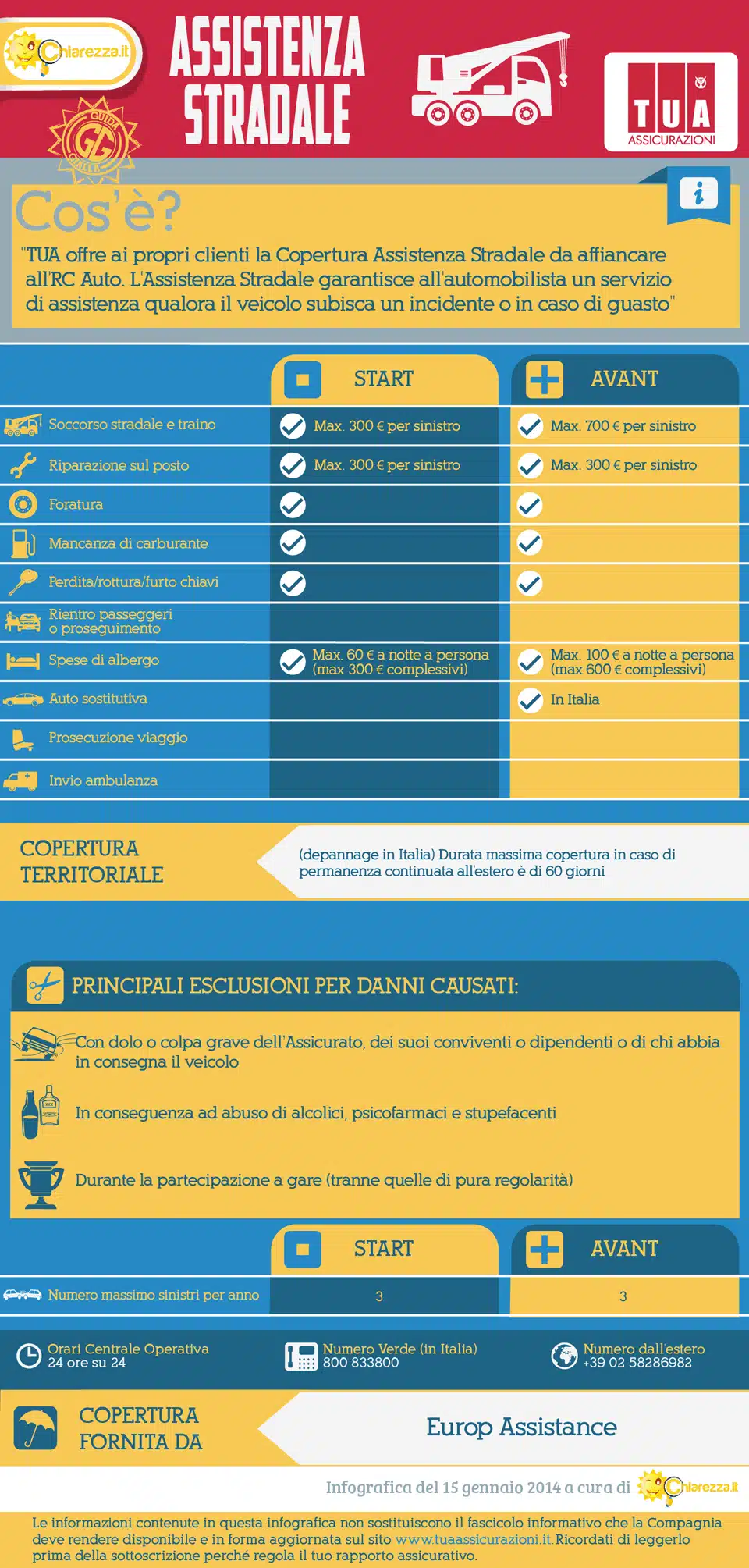 Guarda l’infografica sull’assistenza stradale di Tua Assicurazioni e scopri nel dettaglio le condizioni contrattuali applicate dalla Tua Assicurazioni.